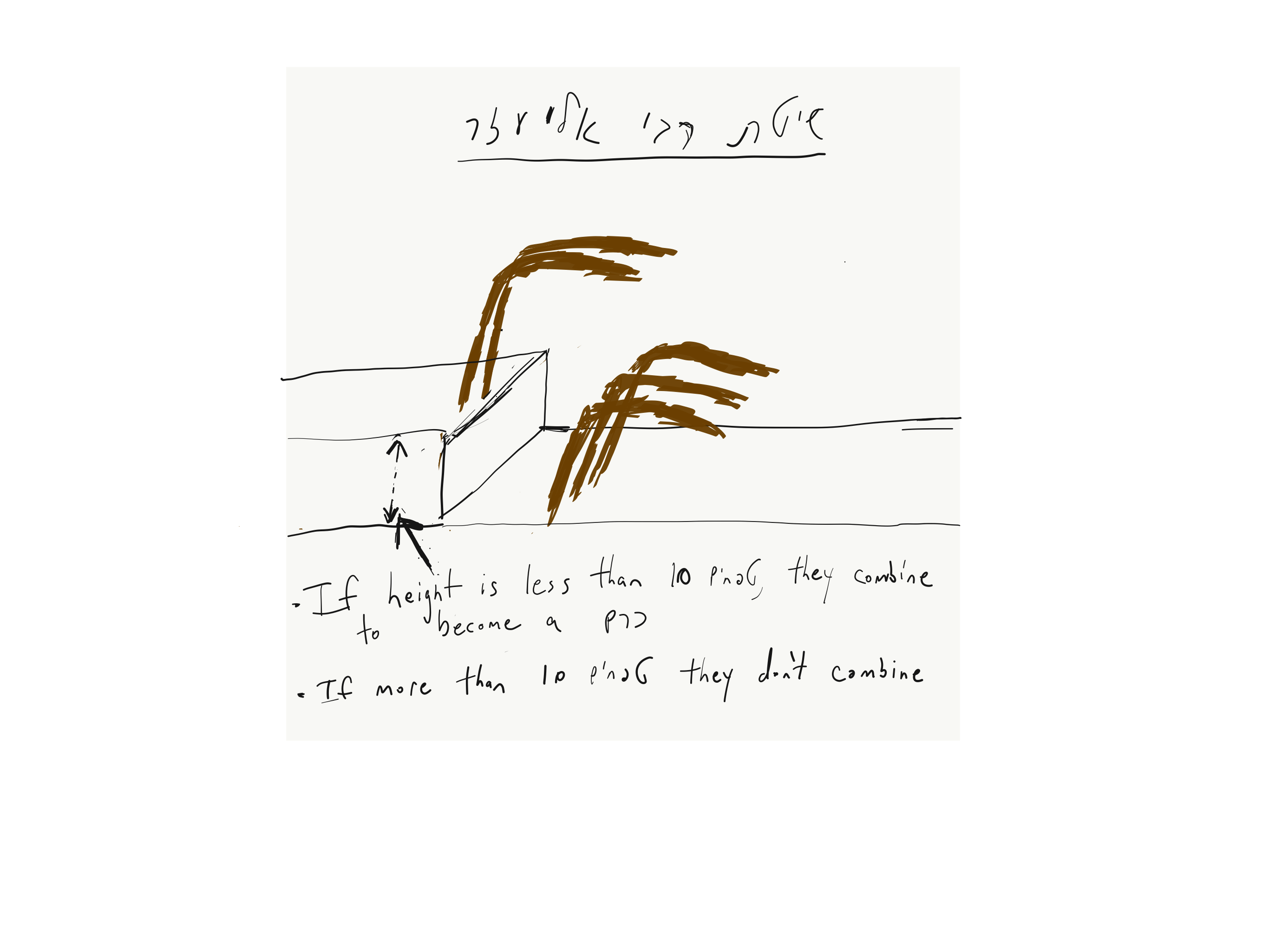 הַפֶּרַח הַיּוֹצֵא מִן הֶעָרִיס, רוֹאִין אוֹתוֹ כְּאִלּוּ מְטֻטֶּלֶת תְּלוּיָה בוֹ, כְּנֶגְדּוֹ אָסוּר. וְכֵן בְּדָלִית. הַמּוֹתֵחַ זְמוֹרָה מֵאִילָן לְאִילָן, תַּחְתֶּיהָ אָסוּר. סִפְּקָהּ בְּחֶבֶל אוֹ בְגֶמִי, תַּחַת הַסִּפּוּק מֻתָּר. עֲשָׂאָהּ כְּדֵי שֶׁיְּהַלֵּךְ עָלָיו הֶחָדָשׁ, אָסוּר