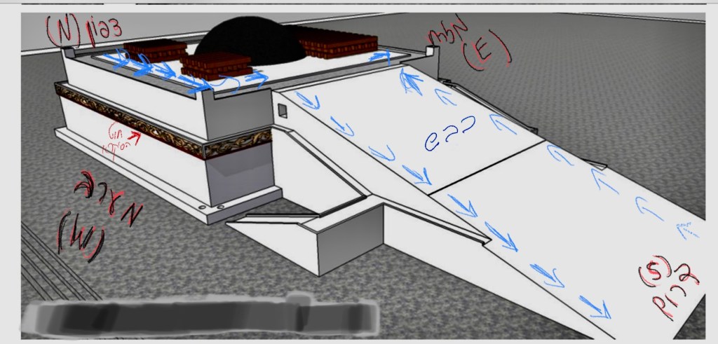 כָּל הָעוֹלִים לַמִּזְבֵּחַ, עוֹלִין דֶּרֶךְ יָמִין, וּמַקִּיפִין וְיוֹרְדִין דֶּרֶךְ שְׂמֹאל, חוּץ מִן הָעוֹלֶה לִשְׁלשָׁה דְבָרִים אֵלּוּ, שֶׁהָיוּ עוֹלִים וְחוֹזְרִים לֶעָקֵב
