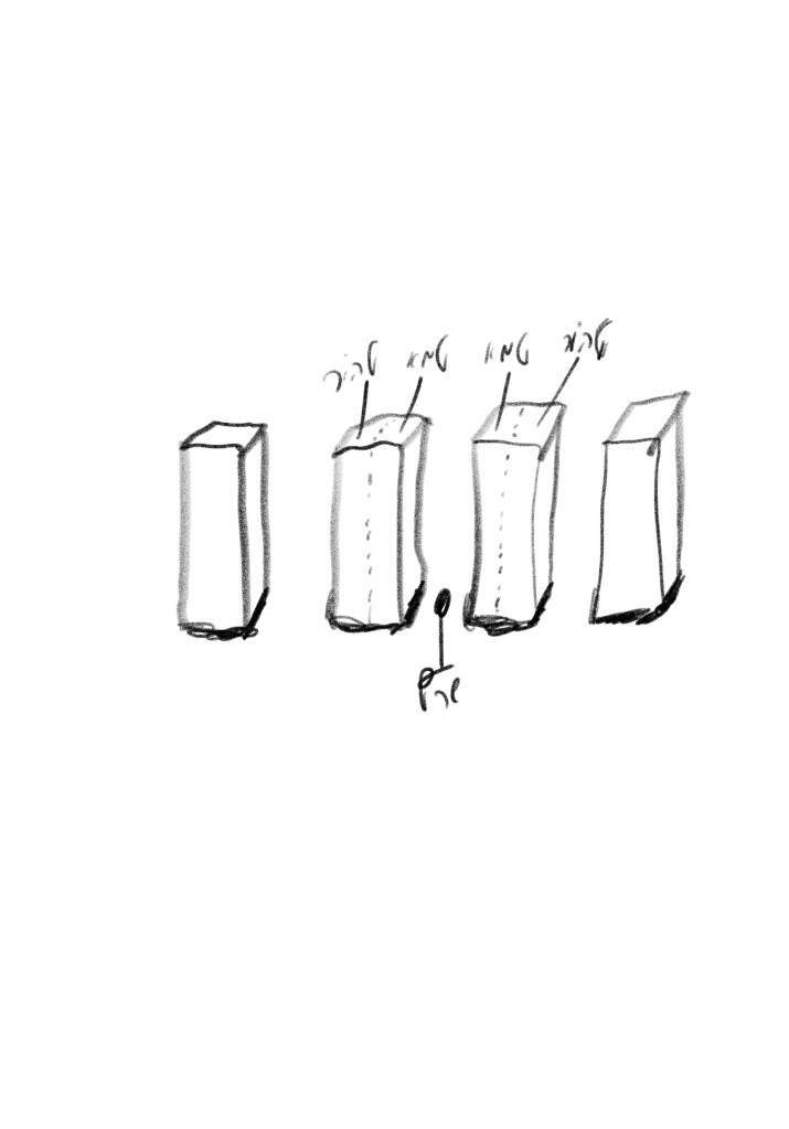 נִטַּל אַחַד מֵהֶן, מִטַּמְּאִין בְּמַגָּע וְאֵינָם מִטַּמְּאִים בַּאֲוִיר, דִּבְרֵי רַבִּי מֵאִיר. רַבִּי שִׁמְעוֹן מְטַהֵר. עָשָׂה שְׁנַיִם, זֶה כְנֶגֶד זֶה, מִטַּמְּאִין בְּמַגָּע וּבַאֲוִיר, דִּבְרֵי רַבִּי מֵאִיר. רַבִּי שִׁמְעוֹן מְטַהֵר. הָיוּ גְבוֹהִין מִשָּׁלֹשׁ אֶצְבָּעוֹת, מִשָּׁלֹשׁ וּלְמַטָּן מִטַּמְּאִים בְּמַגָּע וּבַאֲוִיר, מִשָּׁלֹשׁ וּלְמַעְלָן מִטַּמְּאִין בְּמַגָּע וְאֵינָן מִטַּמְּאִין בַּאֲוִיר, דִּבְרֵי רַבִּי מֵאִיר. רַבִּי שִׁמְעוֹן מְטַהֵר. הָיוּ מְשׁוּכִים מִן הַשָּׂפָה, בְּתוֹךְ שָׁלֹשׁ אֶצְבָּעוֹת, מִטַּמְּאִים בְּמַגָּע וּבַאֲוִיר, חוּץ מִשָּׁלֹשׁ אֶצְבָּעוֹת מִטַּמְּאִים בְּמַגָּע וְאֵינָם מִטַּמְּאִים בַּאֲוִיר, דִּבְרֵי רַבִּי מֵאִיר. רַבִּי שִׁמְעוֹן מְטַהֵר
