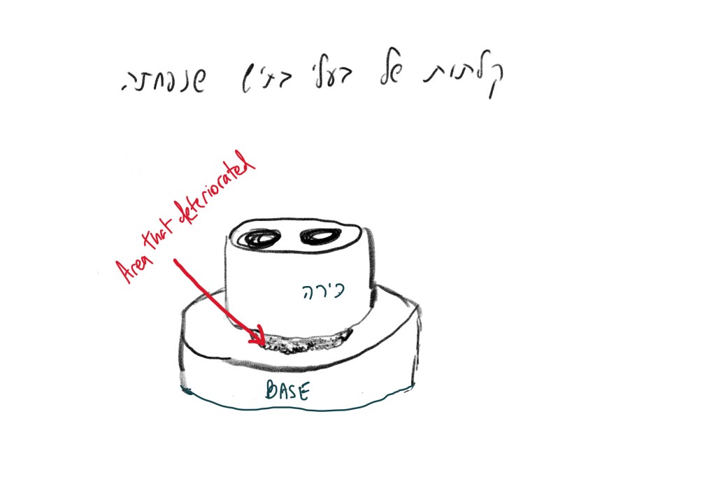 דָּכוֹן שֶׁיֶּשׁ בּוֹ בֵית קִבּוּל קְדֵרוֹת, טָהוֹר מִשּׁוּם כִּירָה, וְטָמֵא מִשּׁוּם כְּלִי קִבּוּל. הַצְּדָדִין שֶׁלּוֹ, הַנּוֹגֵעַ בָּהֶם אֵינוֹ טָמֵא מִשּׁוּם כִּירָה. הָרַחַב שֶׁלּוֹ, רַבִּי מֵאִיר מְטַהֵר, וְרַבִּי יְהוּדָה מְטַמֵּא. וְכֵן הַכּוֹפֶה אֶת הַסַּל וְעוֹשֶׂה עַל גַּבָּיו כִּירָה